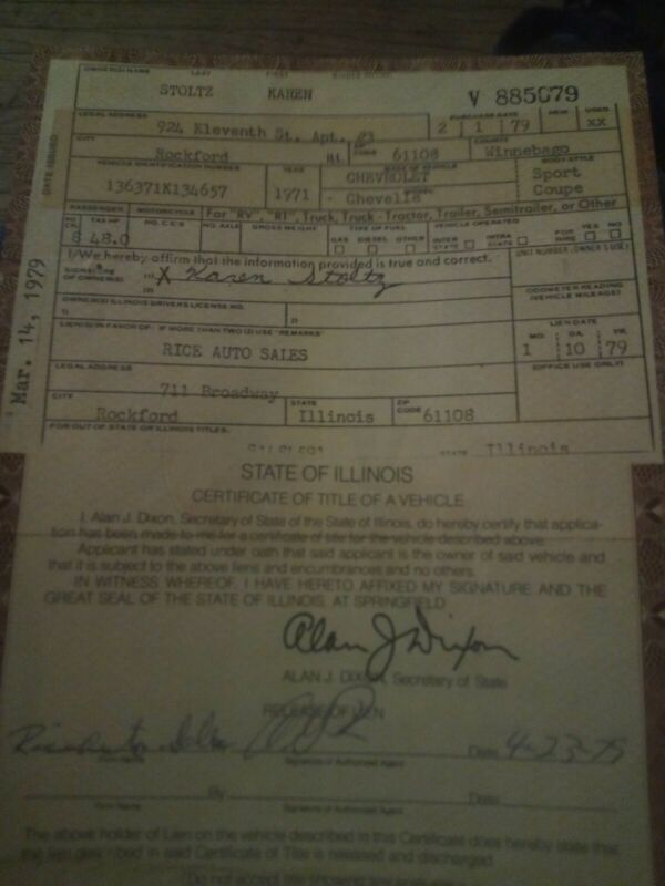 Title (ebay affiliate link): Vtg Car Title Illinois 1971 chevy Chevelle sport coupe Historical Document