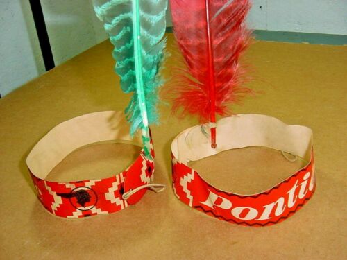 2 Vintage 1940''s PONTIAC CAR INDIAN HEADDRESS WITH FEATHER Old Dealer Display