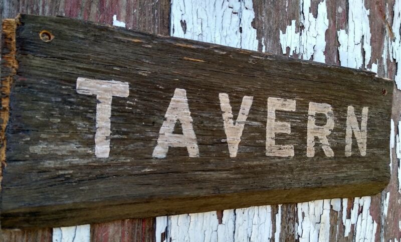 Old early Primitive antique farm chippy Barn wood sign TAVERN millinery barn