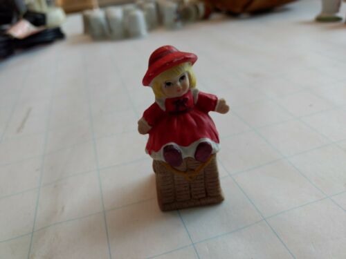 Vintage Enesco Bisque Ceramic Girl Dressed in Red Thimble