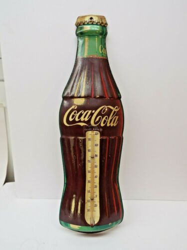 COCA COLA BOTTLE THERMOMETER : TIN/ENAMEL ROBERTSON SIGN : COKE : 16"