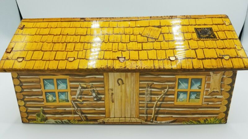 1950-60s Marx Fort Apache Play Set Tin Litho Crooked Horseshoe Cabin Building
