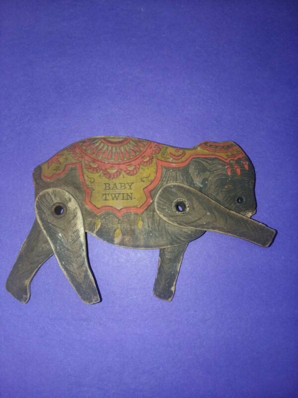 Unique Antique Jointed Wooden Elephant "BABY TWIN"