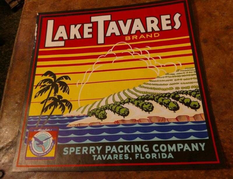 LAKE TAVARES CITRUS CRATE LABEL FLORIDA Original 1940''s ART DECO SPERRY PACKING