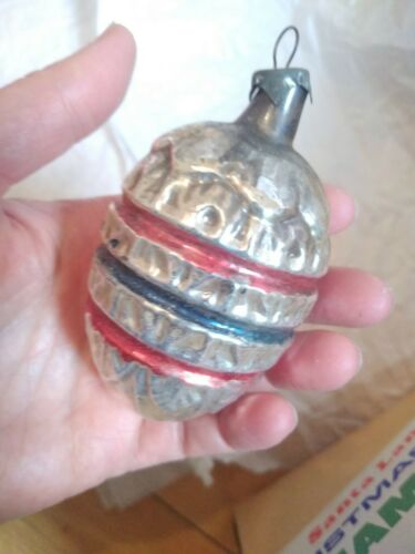 Vintage Mercury Glass ChriSTMAS ORNAMENT WW2 PATRIOTIC RED WHITE BLUE