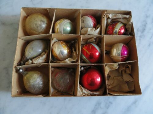 Antique Glass Christmas Ornaments Blown Mercury Original Box 10