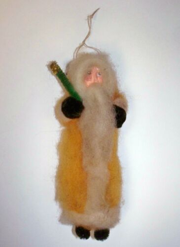 Title (ebay affiliate link): Rare Clay Faced Santa Yellow Spun Cotton Cloths Chenille Feet Cotton Hands