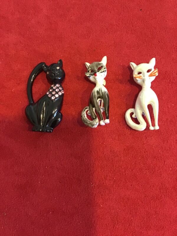 Title (ebay affiliate link): Vintage lot of 3 cat pins, excellent condition, solid pieces