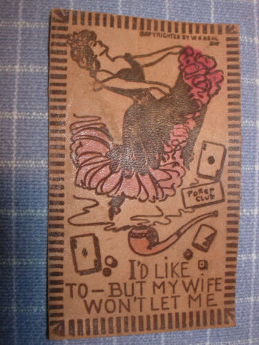 Title (ebay affiliate link): Antique Leather Postcard Humorous Bawdy Vices 1907