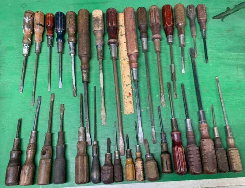 Title (ebay affiliate link): Vintage Lot of 32 Wooden Handle Screwdrivers Old Hand Tool