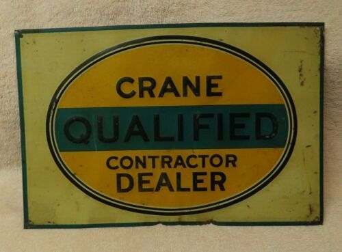 Old Vintage Crane Dealer Pressed Steel Embossed Sign - Plumbing