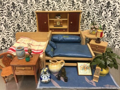 Title (ebay affiliate link): Vintage GERMAN Lot Dollhouse Miniature Wood Bedroom Doll Furniture Bed MCM Mod