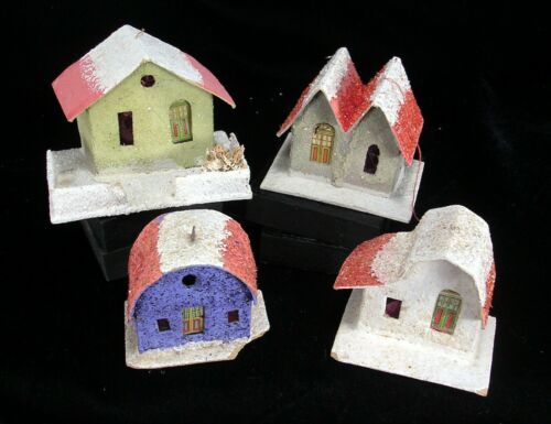 Title (ebay affiliate link): 4 Vintage Christmas Village Cardboard PUTZ HOUSES Japan TINY COCONUTS Papa Ted''s