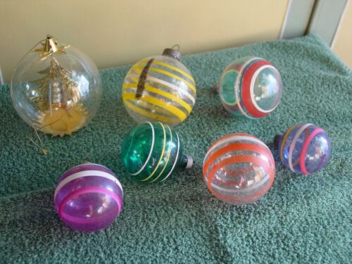 Vintage Unsilvered Christmas Ornaments Shiny Brite Striped German Tree Lot of 7