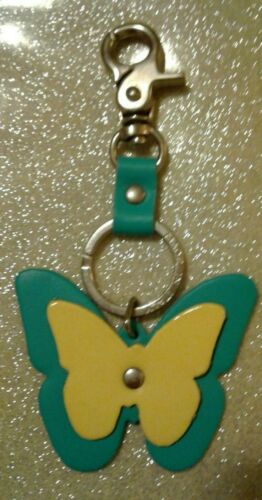 VINTAGE RETRO BRIGHT COLOR BUTTERFLY MADE IN ITALY LEATHER? KEY CHAIN BAG TAG