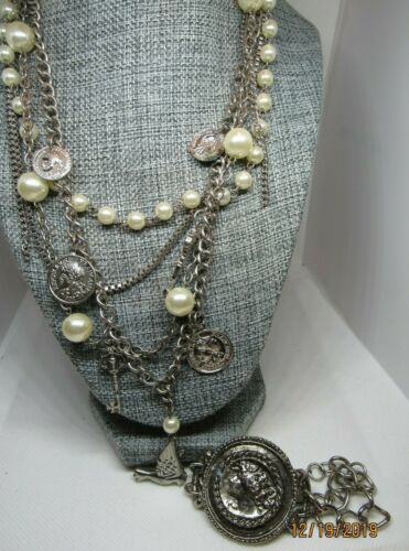 Title (ebay affiliate link): Vintage faux pearl & chain necklace with bird keys & coin charms & bracelet SET