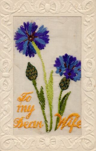 Title (ebay affiliate link): TO MY DEAR WIFE: LARGE THISTLES: WW1 EMBROIDERED SILK POSTCARD: RARE DESIGN