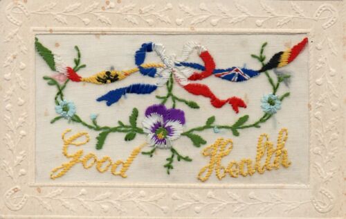 GOOD HEALTH: WW1 PATRIOTIC EMBROIDERED SILK POSTCARD