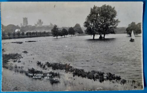 1912 ELY Floods Sail Boat Cathedral Postcard