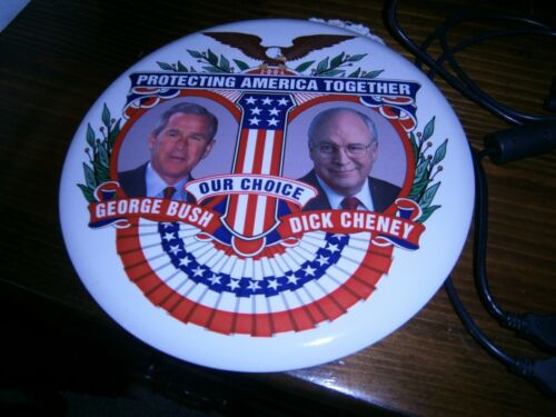 9 INCH POLITICAL BUTTON 2004 PROTECTING AMERICA TOGETHER JUGATE BUSH CHENEY