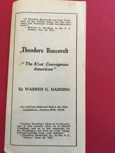 Title (ebay affiliate link): Printed pamphlet of Speech by Warren G. Harding about Teddy Roosevelt - 1919