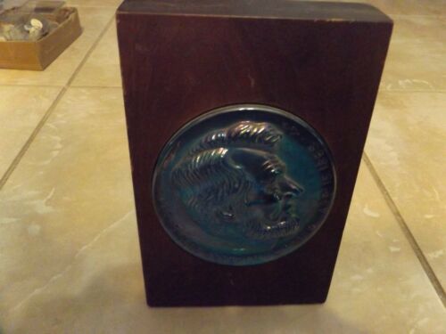 Title (ebay affiliate link): Holly City Abraham Lincoln Iridescent Glass on Wood Frame