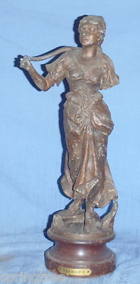 Antique 15.5" French Metal Clock Figure A LA SOURCE