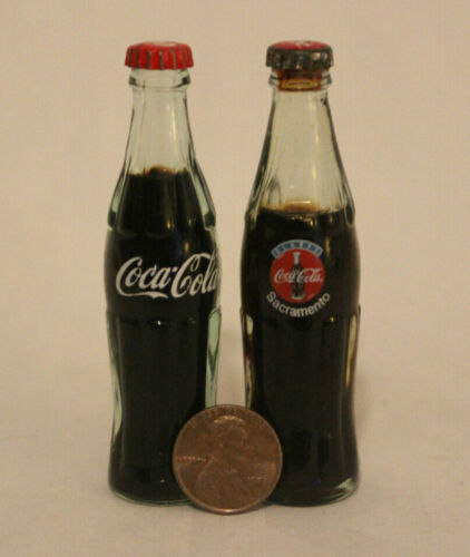 Title (ebay affiliate link): 2 Miniature Old Fashioned Style Coca-Cola bottles w/Coke in them