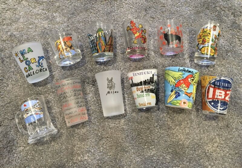12 X Shot Glass Collection Spain Canary Islands Barcelona Mijas Mallorca