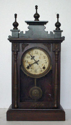 ANTIQUE 3 BALL FINIAL FULL COLUMN SIDE MANTLE CLOCK