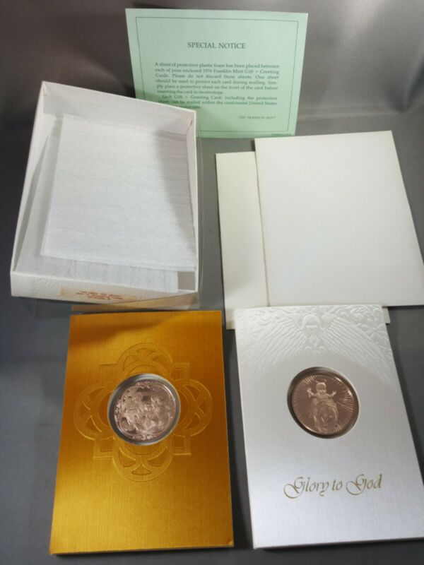 Title (ebay affiliate link): Franklin Mint Gift Coin Medal Greeting Card Christmas, 2 cards, 1975 & 1976