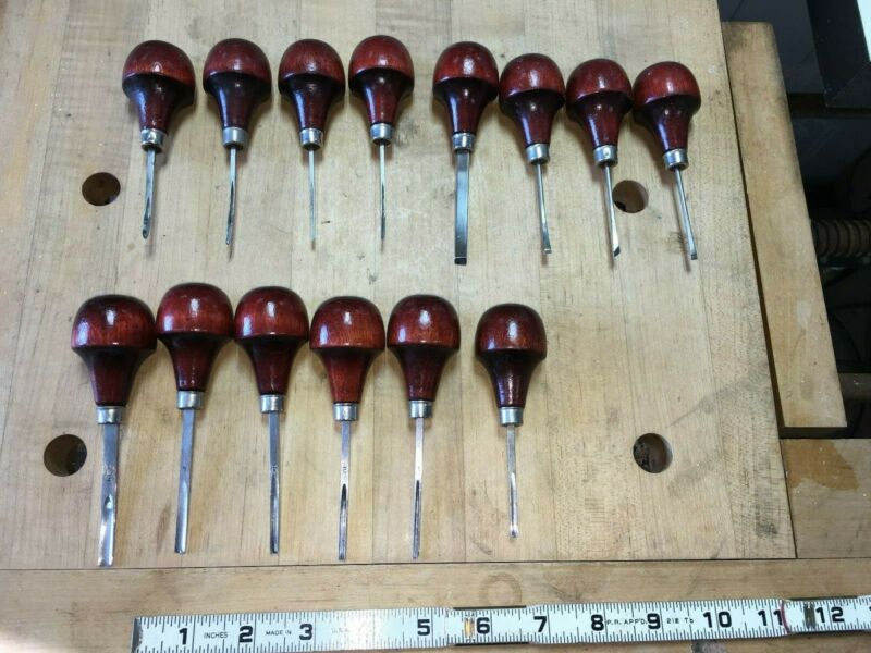 Set of (14) Harmon Palm Chisels for Detail Woodcarving, Excellent Condition