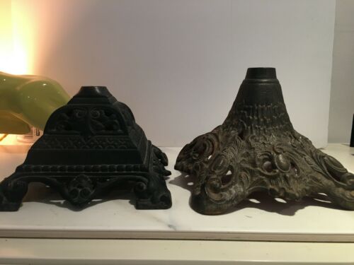 2 antique cast metal oil lamp base and