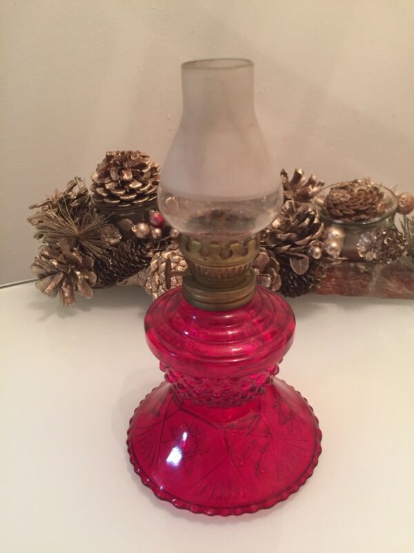 STUNNING VINTAGE RUBY GLASS OIL LAMP