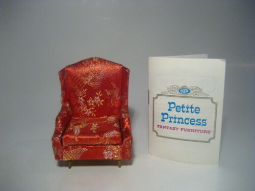 Title (ebay affiliate link): VINTAGE DOLLHOUSE FURNITURE IDEAL PETITE PRINCESS SALON WING CHAIR RED EUC
