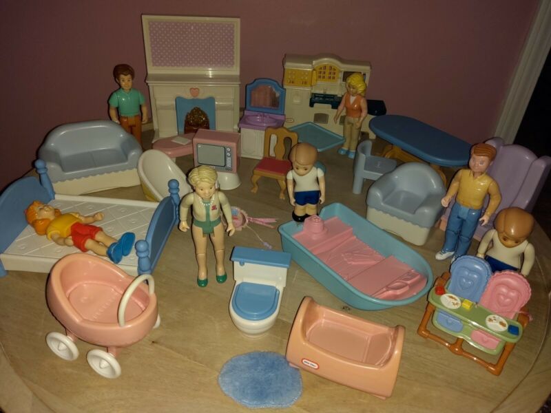 Title (ebay affiliate link): Vintage little tikes lot 29 pc dollhouse furniturefireplace loving family people