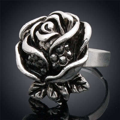 Title (ebay affiliate link): VINTAGE FLOWER ANTIQUE SILVER COCKTAIL ADJUSTABLE RING