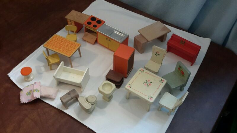 Vintage wood Dollhouse Kitchen Set, Furniture