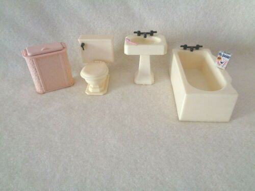 Renwal 4 piece Bathroom Vintage Dollhouse Miniature Furniture Plastic w Extras