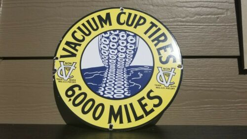 VINTAGE VACUUM PORCELAIN GAS AUTO ROAD CUP TIRES SALES SERVICE STATION SIGN