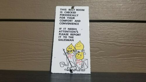 VINTAGE ESSO GASOLINE PORCELAIN METAL GAS RESTROOM SERVICE AD PUMP PLATE SIGN