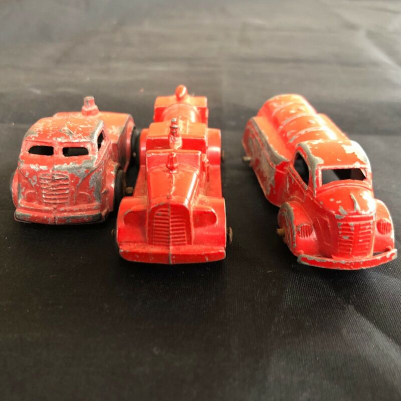 Vintage Set (3) Tootsie Toy Barclay Toy Cars Fire Engine Trucks Red
