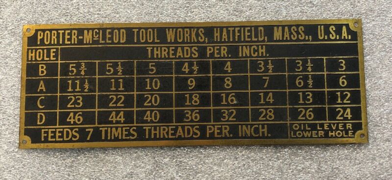 Original Porter McLeod Tool Works Hatfield Massachusetts Brass Machine Sign