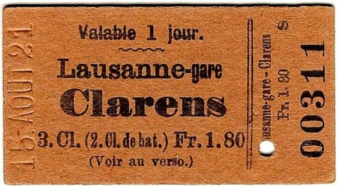 Title (ebay affiliate link): Railway ticket: Switzerland: Lausanne-gare to Clarens - 1921