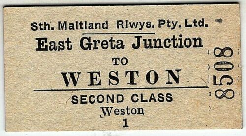 Title (ebay affiliate link): Railway ticket: Australia: Sth. Maitland Rlwys. Pty Ltd: East Greta Jct.