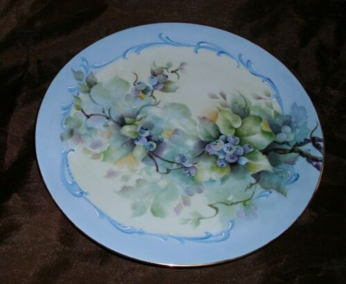 Vintage Porcelain Plate Hand Painted Blueberry Floral 10 3/4"