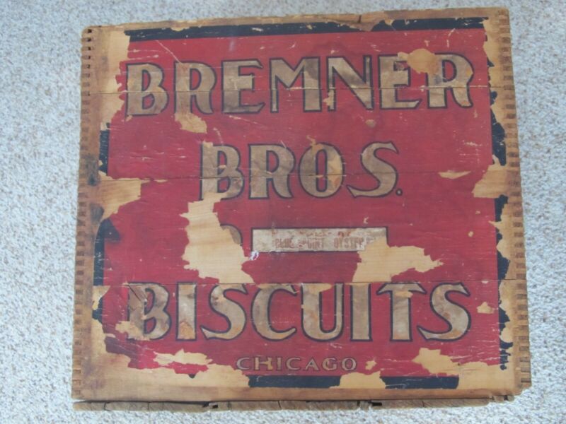 Title (ebay affiliate link): Antique Bremner Bros. Biscuit, Chicago Wooden Finger Jointed Shipping Box Crate