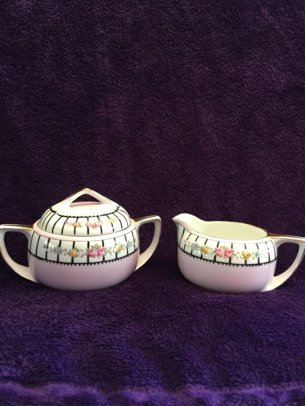 Vintage Gold Trimmed Sugar And Cream Set.