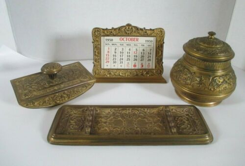 Antique Art Nouveau Marshall Field & Co. Bronze 4 Piece Desk Set