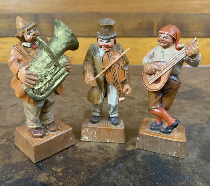 Title (ebay affiliate link): Vtg Set Hand Carved Wooden Folk Art Musician Band South Tyrolian Fomerz Figurine